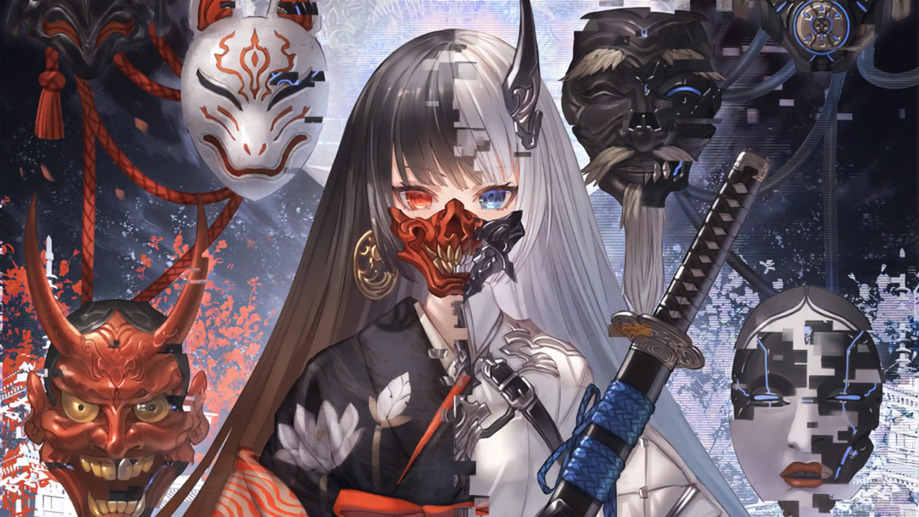 Anime Girl Mask Katana 4K #2220f Wallpaper