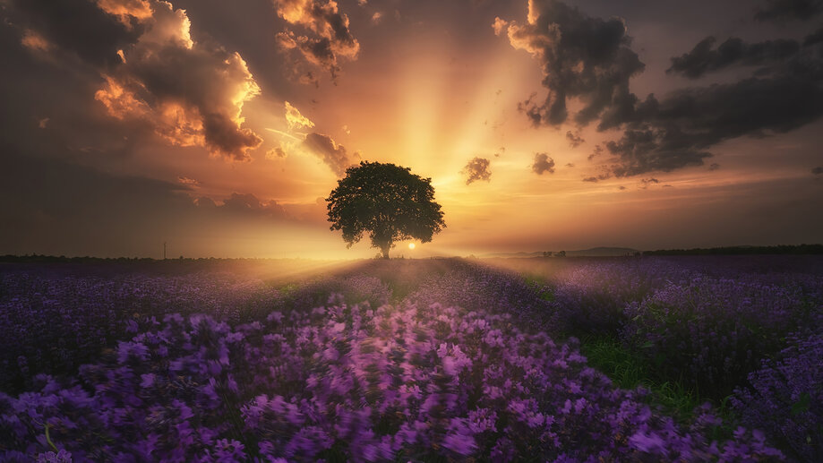 Sunrise Tree Lavender Flower 4K #5780f Wallpapers