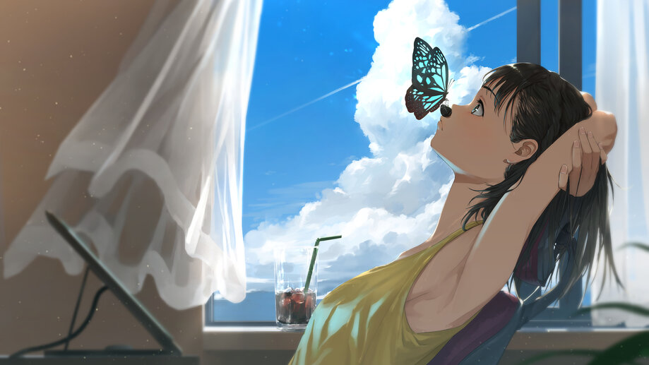 Anime Girl Butterfly Clouds 4K #6750f Wallpaper