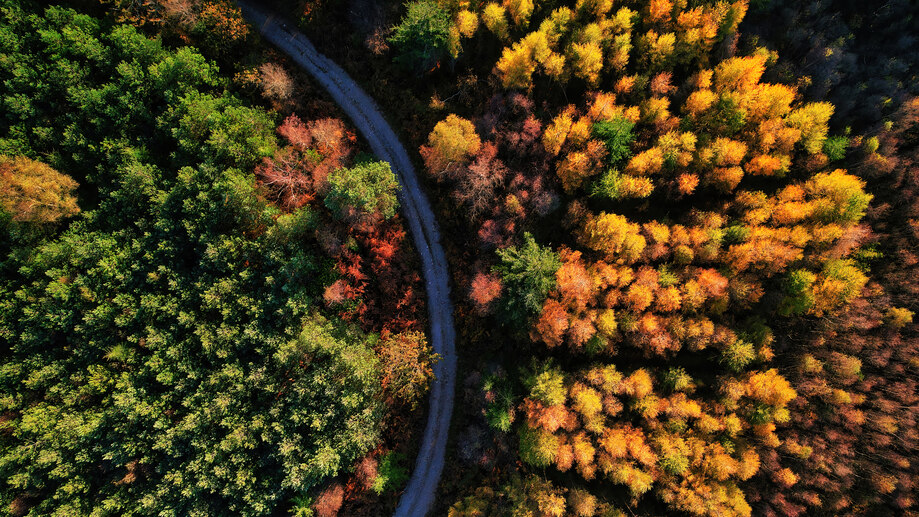 Autumn Forest Scenery Road Aerial View 4K #8720f Wallpaper