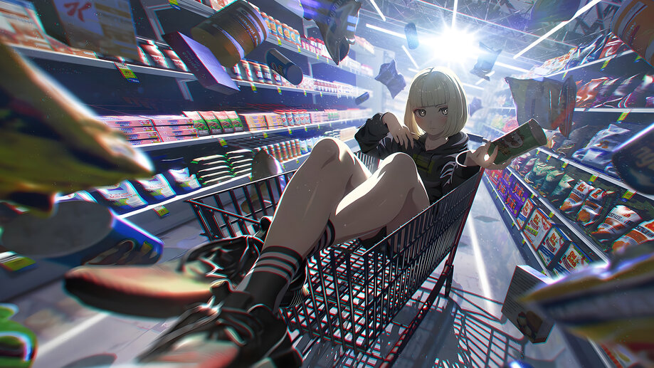 4K PC Desktop HD Wallpaper Anime Girl Food Shopping Cart 4K #7960h and 4K Phone iPhone wallpaper HD background with search keywords . Awesome Ultra HD 4K wallpaper for PC, Laptop, Desktop Computer, (Razer, Apple MacBook, MSi, Alienware, Asus, Gigabyte Aorus, HP, Lenovo, Dell, Samsung Galaxy Book), Smart TV Screen, Video Game Console Monitors (Sony PlayStation, Microsoft Xbox).