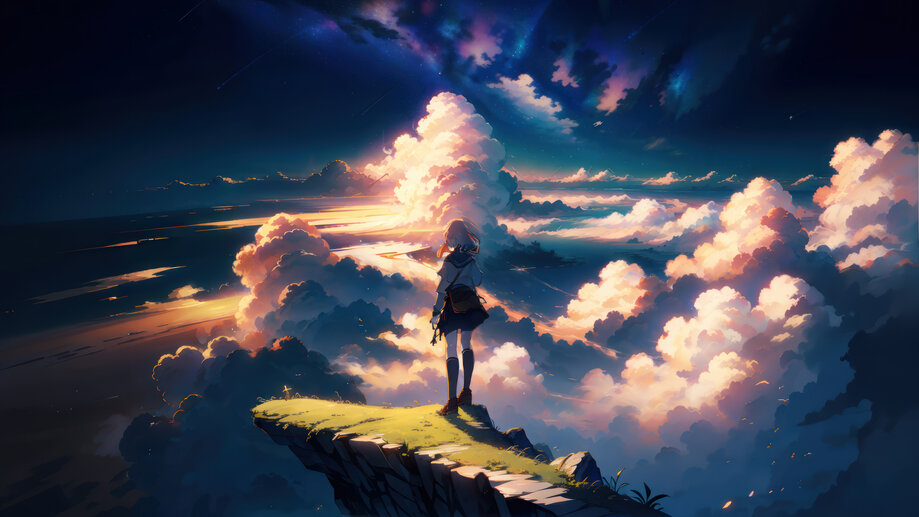Anime Girl Alone Clouds Sky 4K #7391l Wallpaper