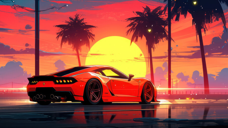 Sports Car Sunset Palm Trees 4K #3331m Wallpaper