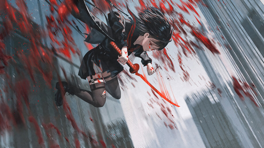 Anime Girl Blood Katana Sword 4K #1661n Wallpaper