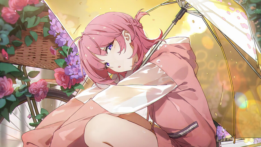 Anime Girl Pink Hair Umbrella 4K #8800i Wallpaper