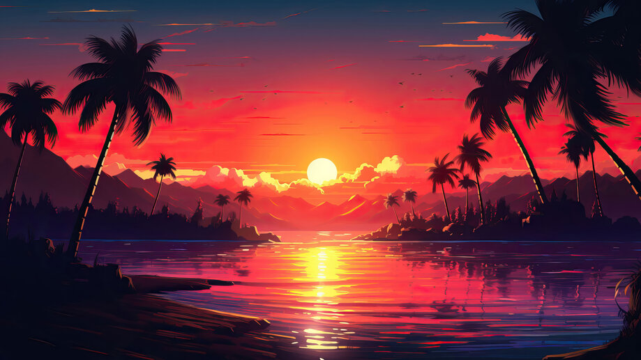 Sunset Scenery Palm Trees 4K #1363a Wallpaper