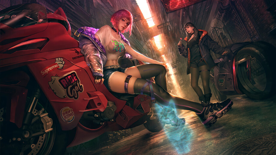 Cyberpunk Girls Motorcycle 4K #7073a Wallpapers