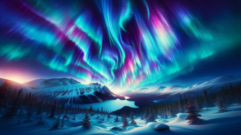 Northern Lights Snow Mountain 4K #8193a Wallpaper