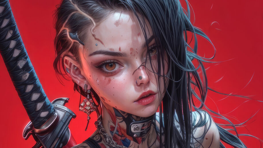 Anime Girl Tattoo Katana 4K #7300j Wallpaper