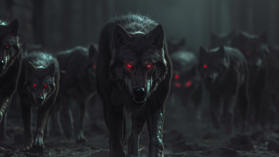 Wolf Pack Red Eyes Digital Art 4K #6600j Wallpapers