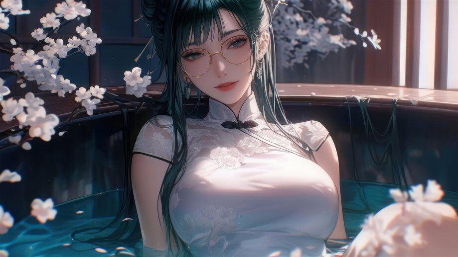 Anime Girl with Glasses Flower 4K #2300k Wallpaper