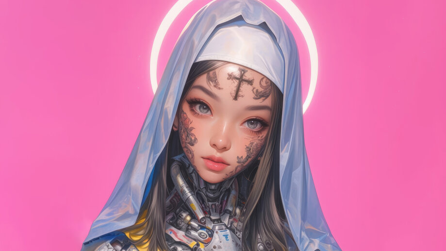 Cyberpunk Anime Girl Nun 4K 8K #1462a Wallpaper