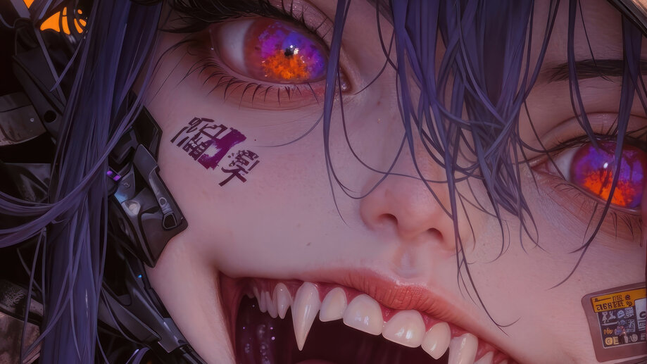 Cyberpunk Anime Girl with Fangs 4K #1362a Wallpapers