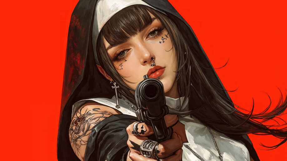 Nun with a Gun Anime Girl 4K #1232a Wallpaper