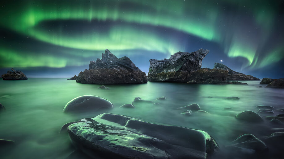 5482a | Aurora Borealis, Northern, Lights, Rock, Scenery, 4K Wallpaper