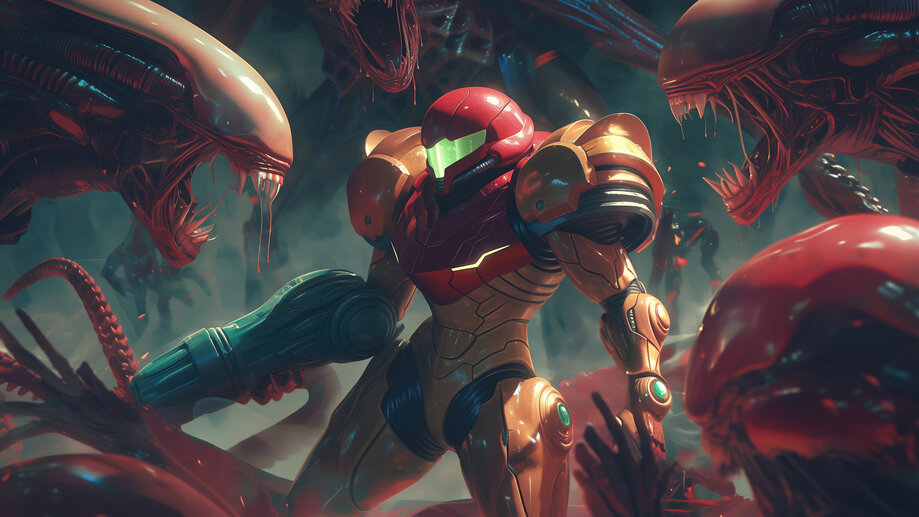 5722a | Metroid, Samus Aran, vs., Alien, 4K Wallpaper