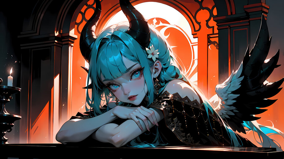 892b | Anime, Girl, Demon, Horn, Fantasy, Art, 4K Wallpaper