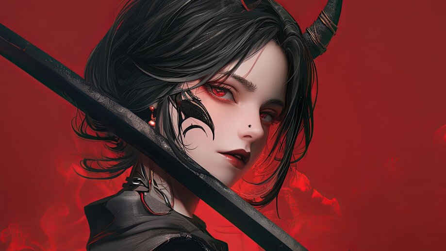 4K PC Desktop HD Wallpaper 962b | Anime, Girl, Katana, Demon, Horn, Red Eyes, 4K and 4K Phone iPhone wallpaper HD background with search keywords . Awesome Ultra HD 4K wallpaper for PC, Laptop, Desktop Computer, (Razer, Apple MacBook, MSi, Alienware, Asus, Gigabyte Aorus, HP, Lenovo, Dell, Samsung Galaxy Book), Smart TV Screen, Video Game Console Monitors (Sony PlayStation, Microsoft Xbox).