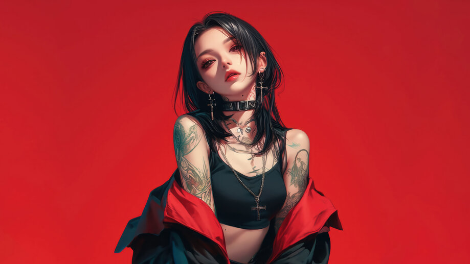 6822b | Anime, Girl, with, Tattoo, 4K Wallpaper