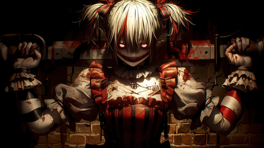 105a | Scary, Anime Girl, Clown, Smile, 4K Wallpaper