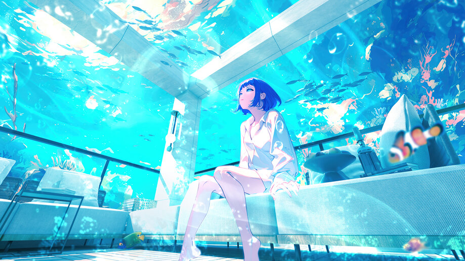 1775b | Anime, Girl, Underwater, Room, 8K Wallpapers