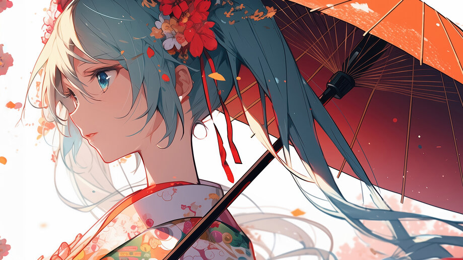 2185b | Hatsune Miku, Kimono, Anime, Girl, 4K Wallpaper