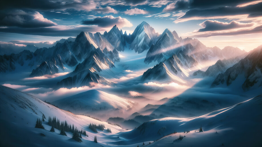 3465c | Snowy, Mountain, Sunrise, Scenery, 4K Wallpaper