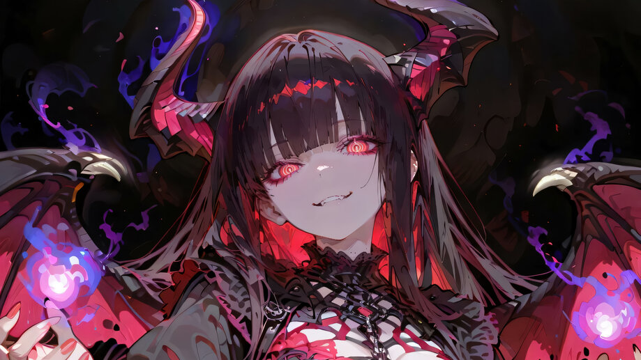 3585c | Anime, Girl, Horn, Dragon, Wings, 4K Wallpapers