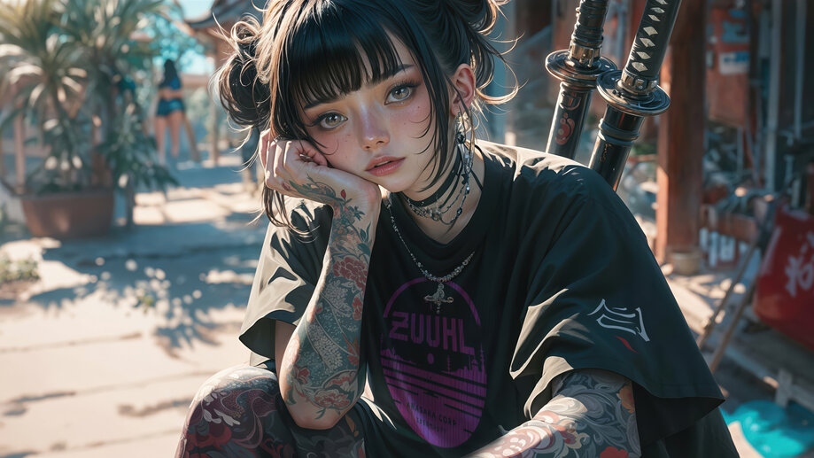 4K PC Desktop HD Wallpaper 3685c | Anime, Girl, Tattoo, Katana, 4K and 4K Phone iPhone wallpaper HD background with search keywords . Awesome Ultra HD 4K wallpaper for PC, Laptop, Desktop Computer, (Razer, Apple MacBook, MSi, Alienware, Asus, Gigabyte Aorus, HP, Lenovo, Dell, Samsung Galaxy Book), Smart TV Screen, Video Game Console Monitors (Sony PlayStation, Microsoft Xbox).