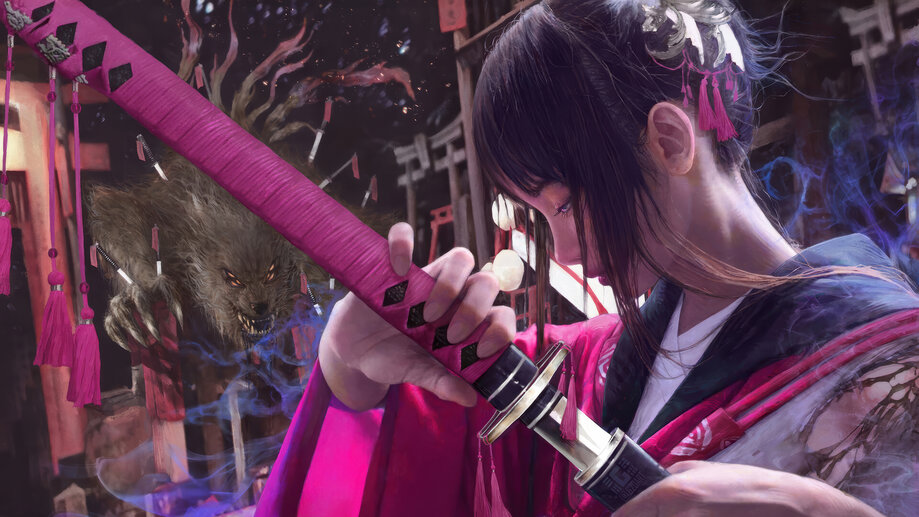 4K PC Desktop HD Wallpaper 4505c | Samurai, Girl, Katana, Fantasy, 4K and 4K Phone iPhone wallpaper HD background with search keywords . Awesome Ultra HD 4K wallpaper for PC, Laptop, Desktop Computer, (Razer, Apple MacBook, MSi, Alienware, Asus, Gigabyte Aorus, HP, Lenovo, Dell, Samsung Galaxy Book), Smart TV Screen, Video Game Console Monitors (Sony PlayStation, Microsoft Xbox).