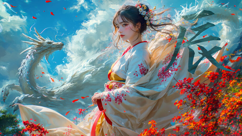 4K PC Desktop HD Wallpaper 3055d | Fantasy, Girl, Kimono, Dragon, 4K and 4K Phone iPhone wallpaper HD background with search keywords . Awesome Ultra HD 4K wallpaper for PC, Laptop, Desktop Computer, (Razer, Apple MacBook, MSi, Alienware, Asus, Gigabyte Aorus, HP, Lenovo, Dell, Samsung Galaxy Book), Smart TV Screen, Video Game Console Monitors (Sony PlayStation, Microsoft Xbox).