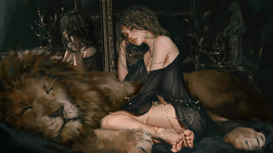 5345e | Anime Girl, Fantasy, Lion, 4K Wallpapers