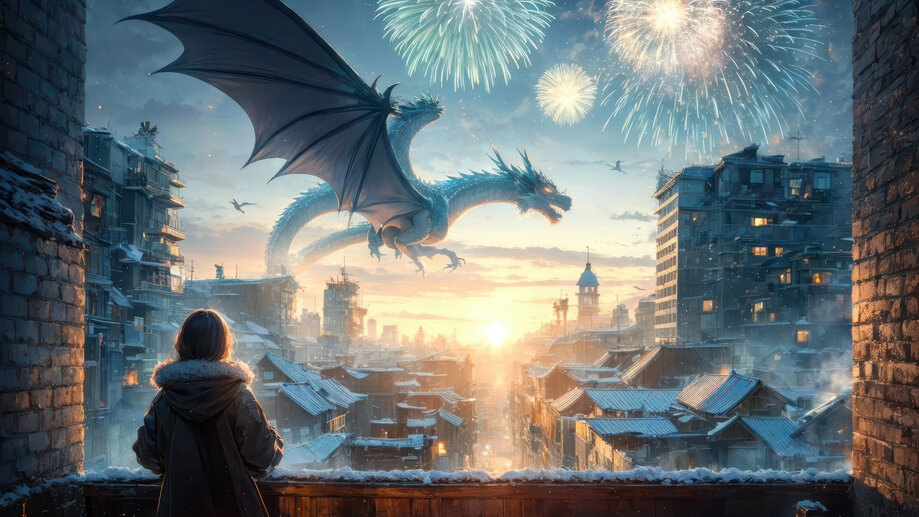 885g | Fantasy, Dragon, Fireworks, Sunrise, 4K Wallpapers