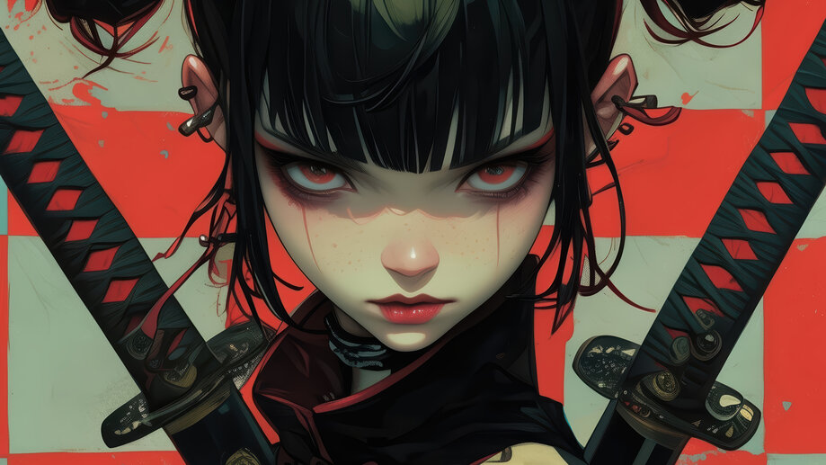 1535h | Anime Girl, Red Eyes, Katana, 4K Wallpaper