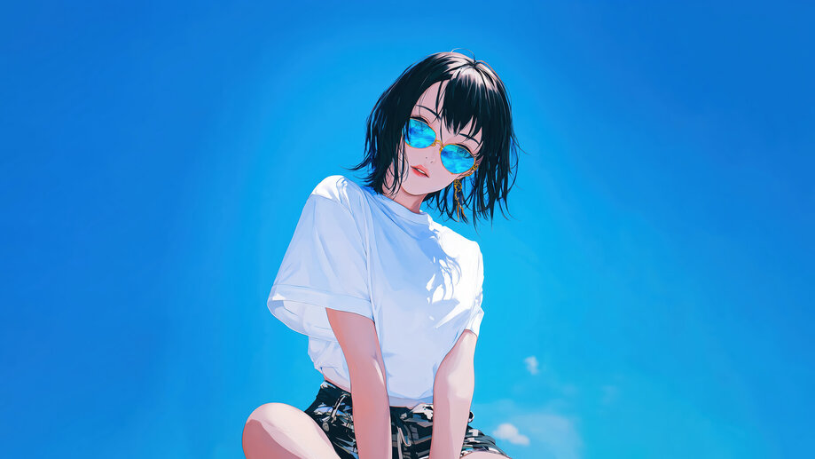 5625h | Anime Girl, Short Hair, Sunglasses, 4K Wallpaper